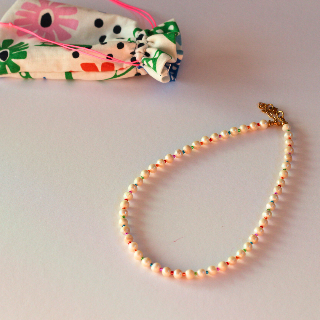 with lovingly handcrafted jewelry made from gemstone, freshwater pearl, and glass beads, carefully strung on durable, high-quality beading wire for long-lasting wear.